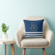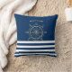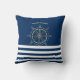 Nautical, Gold Boat Wheel, Navy Blue Stripes Kussen