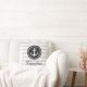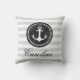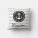 Moderne werpen kussen ontwerp met grijze strepen patroon, anker en aanpasbare naam.
