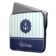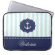 Nautical Mint Navy Blue Anchor Custom Name Laptop Sleeve