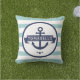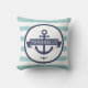 Nautical Navy Blue Anchor Familienaam Aqua Stripes Buitenkussen