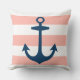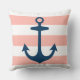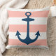 Nautical Navy Blue Anchor met Blush Pink Stripes Kussen