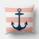 Nautical Navy Blue Anchor met Blush Stripes Kussen