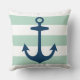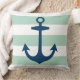 Nautical Navy Blue Anchor met Mint Green Stripes Kussen