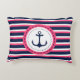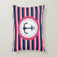 Nautical Navy Blue Hot Pink Stripes Anchor Design Decoratief Kussen