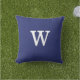 De voorkant van deze kussen is blauw van de marine met een initiaal in wit monogram om je te personaliseren. De achterkant van de kussen heeft blauw en witte strepen van de zeemacht.