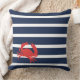 Nautical Navy Blue Stripes Red Crab Boat Name Kussen