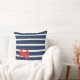 Maakt een perfect cadeau met zeemansblauw en witte strepen met rode krabkussen. Voeg je familienaam of bootnaam op de achterkant van de kussen toe.