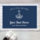 Koester maritieme charme met onze Navy Blue Welkom aan boord Bootnaam Anchor. In elegant marineblauw en wit is het perfect voor kust-, boot- en zeilliefhebbers. Personaliseer met de naam van de boot, stad, staat. Ideaal kustgeschenk!