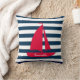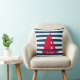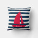 Nautical Navy Blue White Stripe Monogram Red Boat Kussen