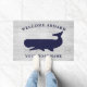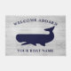Nautical Navy Blue White Welcome Aboard Name Doormat. Pas dit New England nautical strand house-themed doormat aan met je bootnaam. De set is voorzien van een populair, gevlekt, met witte spoeling verweerd hout met een walvis. Aangepaste bestellingen beschikbaar op truullc@gmail.com