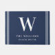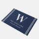 Dit is een moderne elegante nautische monogram deurmat, perfect voor het strandhuis of de boot. Het ontwerp maakt gebruik van een marineblauw en wit kleurthema met een initialen monogram en touwaccenten. Bewerk de tekst eenvoudig met de sjabloon. Neem voor vragen over dit ontwerp contact op met de ontwerper.