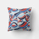 Dit werpt kussens met een geïllustreerd, abstract ontwerp dat op oceaangolven lijkt. De kleuren zijn schaduwen van rood, wit en blauw en het ontwerp is een stromend, herhalend patroon. Ideaal voor beachy-, kust- of nautische themdecor.