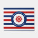 Prachtige tijdloze nautische zeilorstijl met rode roer in het midden met witte cirkel op de achtergrond met gepersonaliseerde teksten aan de boven- en onderkant. Het ontwerp heeft een rood wit en blauw marinespoor patroon op de achtergrond. Geschikte persoonlijke gave voor je geliefden. in Zazzle met uw eigen tekst voor een gepersonaliseerd ontwerp. Bekijk mijn winkel voor overeenkomende objecten!