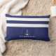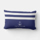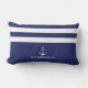 Nautical Stripes Custom Boat Name white anchor navy blue Lumbar Pillow. De tekst nautische zeiltekst aanpassen, naam kapitein. Naam van de boot, winkel, handelsnaam. Minimalistisch, eenvoudig en elegant ontwerp. geweldig voor zweefvliegtuigen, boilers, zeilen en koken. Vrolijk zeilen.