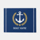 Decoreer uw thuisingang met een zeemleed en uw persoonlijke bootnaam, familienaam of andere gewenste tekst. Met een speciaal ontworpen bootanker met een gouden laurierblad en een nautische touwstreep in wit op marinesblauw, of pas de primaire kleur eenvoudig aan om aan te passen aan uw huidige decor of thema.