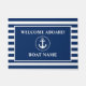 Nautical Welcome Aboard Anchor Rope Navy Blue and White Stripes Your Boat Name