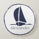 Nautical White sailboat Navy blue Coastal Monogram Rond Kussen