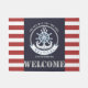 Nautisch anker, wiel, marineblauw, rode strepen deurmat