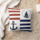 Nautisch anker/zeilboot rode/marineblauwe streep kussen