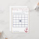 Baby shower bingo in geel, blauw en rood met een rood anker.