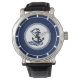 Nautisch blauw en wit anker symbool zeilstijl horloge