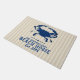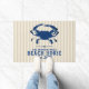 Beachy chique blauwe krab deurmat met de woorden "beach house", de naam van uw familie, en de kust taupe strepen met est. datum.