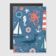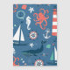 Dit ontwerp van de fab heeft een nautisch thema met tonnen zee, vuurtorens, walvissen, ankers en moeras; zeemijlvlaggen op een donkerblauwe achtergrond.