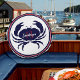 Nautische Monogrammed Rood Navy Blauw Wit Krab Rond Kussen Met makkelijk te gebruiken sjablonen voor een perfect gepersonaliseerd kusthuis