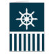 Nautisch ontwerp met zeilwiel en blauwe en witte strepen voor decoratie op blauwe achtergrond