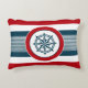 Nautisch ontwerp met versiering van kompassen in ronde vorm op blauwe, rode en witte gestreepte achtergrond
