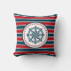 Nautisch ontwerp met versiering in ronde vorm met sterren op rode, blauwe en witte gestreepte achtergrond