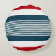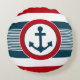 Nautical design with anchor decoration in round shape on blue, red and white striped background