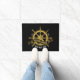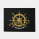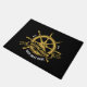 Deze stijlvolle nautische zwarte en gouden deurmat is voorzien van een prachtig gesmolten scheepswiel, een tijdloos symbool van zeilen en avontuur. Pas het aan met de naam en vestigingsdatum van uw boot om een uniek en persoonlijk welkom voor gasten te creëer.