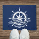 Deze stijlvolle nautische Navy Blue-deurmat heeft een prachtig weergegeven scheepswiel, een tijdloos symbool van zeilen en avontuur. Pas het aan met de naam en vestigingsdatum van uw boot om een uniek en persoonlijk welkom voor gasten te creëer.