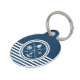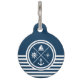 Het ontwerp met een zeemijlvormige maaswijdte (anker, zeilboot, zeilwiel, kompas) is voorzien van een decoratie op witte en blauw gestreepte ondergrond.