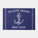 Maritiem kustdecor thema deurmat. Marineblauwe boot anker deurmat.