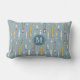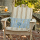 Perfecte patio decor voor het rivierkamp, dit vogeloog uitzicht nautische thema buitenkussen kan worden aangepast met elke achtergrondkleur en beschikt over gevarieerde grootte zeeschepen op een blauwe achtergrond met een aangepast monogram op een donkerblauwe cirkelhanger - het patroon omvat 3 vrachtschepen, een zeilboot, een cruiseschip, een paddle wheel tour boot, een jacht en een vissersboot, verticaal georiënteerd - Op de rivier © katz_d_zynes 2019