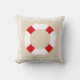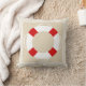 Klassieke nautische stijl kussen met een neutrale zanderige taupe, wit gestreept lijst en een rode en witte levensbeschermer.
