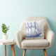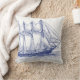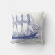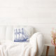 Klassiek elegant nautisch werpkussen met een marineblauwe schoener-illustratie en een witte achtergrond.