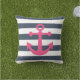 Nautische Marine Blauwe Strepen Roze Magenta Anker Buitenkussen