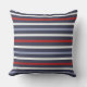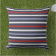 Nautisch werpkussen. Groot streeppatroon in rood, wit en blauw.