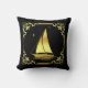 Nautische zeilboot silhouet/goud/zwart vierkant kussen
