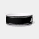 Deze zwarte dierenschaal heeft witte weergavetekst in het midden. U kunt de tekst bewerken om de juiste naam te shows. Deze nautische gezelschapsschaal heeft ook een witte zeilboot aan weerszijden van de tekst.