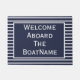 Perfect chic, en klassieke marine en white Welcome Aboard The ________ doormat voor uw boot van marineslag aanpasbaar met uw botennaam