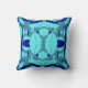 Navy Aqua Slate Abstracte Symmetrische Bloemen Mot Kussen