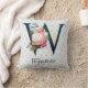 Navy bloemenmonogram W sierkussen