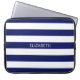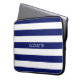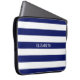 Navy Blue 5c Preppy Horiz Stripe Name Monogram Laptop Sleeve
