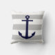 Navy Blue Anchor op grijze en witte strepen Kussen