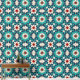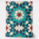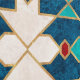 Navy blauw, blauwgroen, wit en rood marmer Marokkaans mozaïekpatroon met een goudgrens.