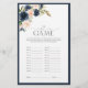 Moderne, elegante vrijgezellenfeest game "The Schort Game", met een bouquet marineblauw en blauw roze bloemen, in marinblauw. Deel van een gecoördineerde suite. De reeks van het uitzicht hier: https://www.zazzle.com/collections/navy_blue_blush_floral_watercolor_bridal_shower-119055669272624939 de ontwerper van het contact voor de aanpassing van producten. Copyright Anastasia Surridge voor Elegant Invites, alle rechten voorbehouden.